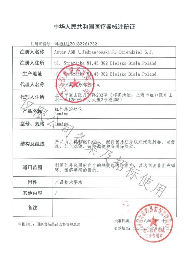 | 漢語拼音 | hengaohongwaixianzhiliaoyi-Lumina |