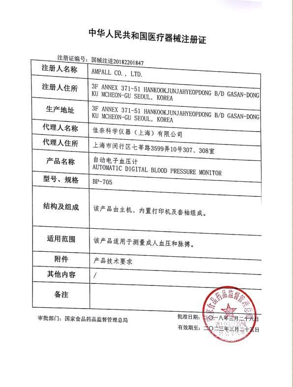 | 英文名稱 | Jianai automatic electronic sphygmomanometer BP705 |