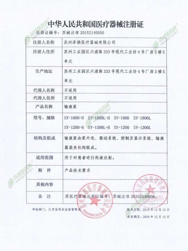 | 英文名稱 | Zede infusion pump SY-1200L |