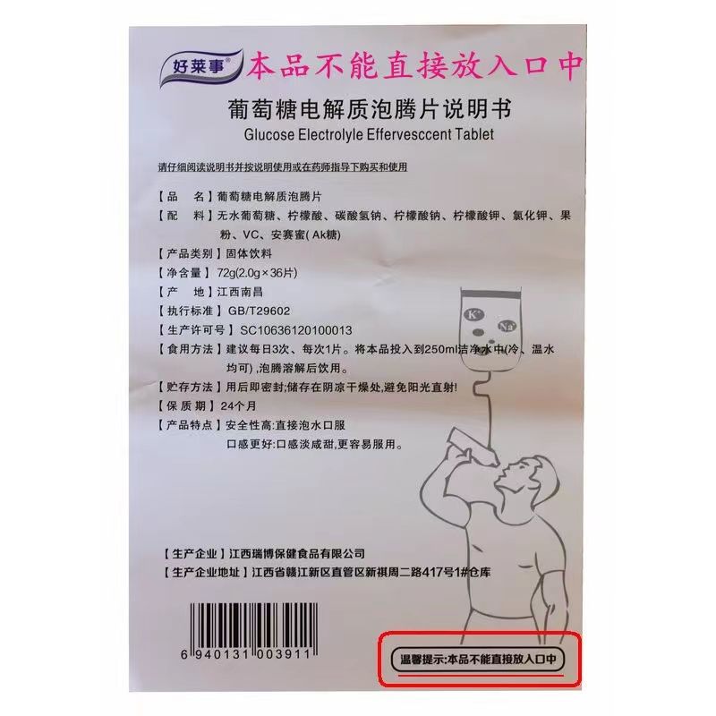 產(chǎn)品名稱: 好萊事葡萄糖電解質(zhì)泡騰片