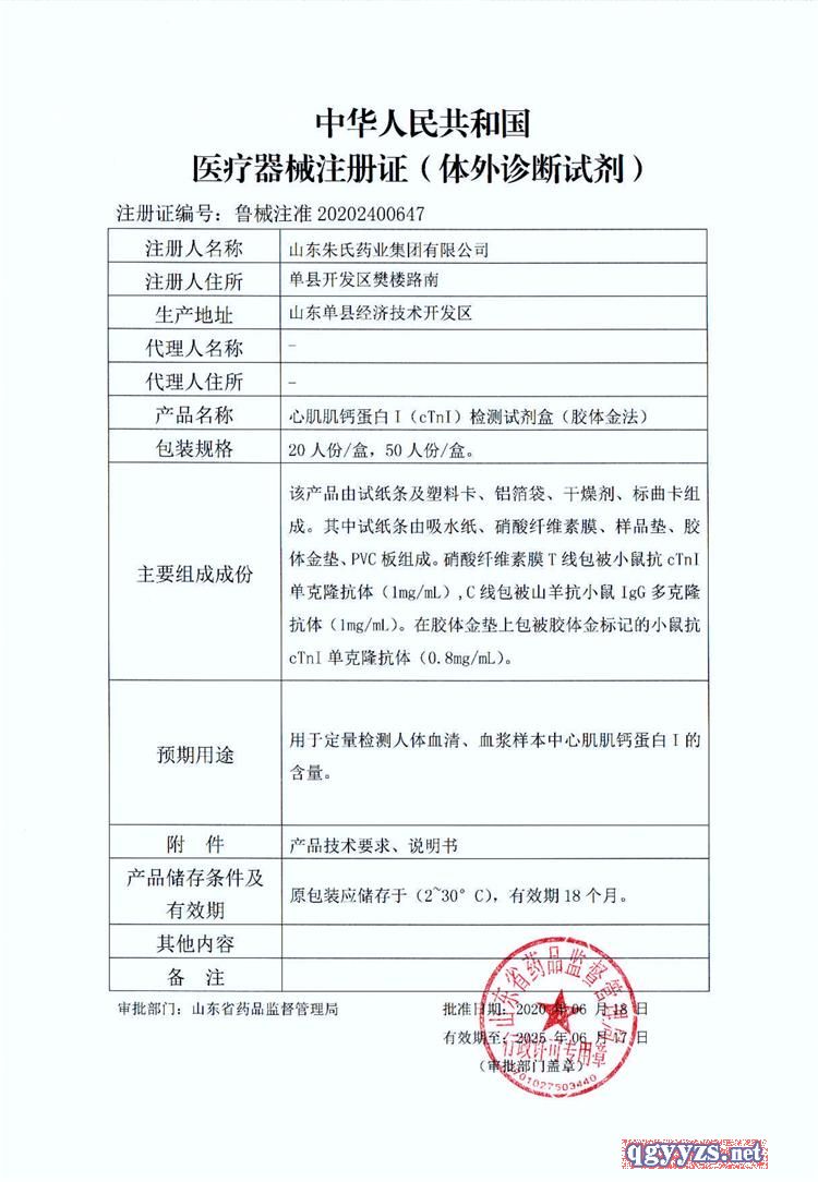 | 產(chǎn)品名稱 | 心肌肌鈣蛋白檢測試劑盒 |