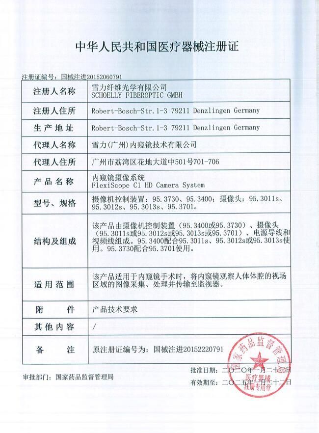 | 主要成分 | 該產(chǎn)品由攝像機(jī)控制裝置(95.3400或95.3730)、攝像頭(95.3011s或95.3012s或95.3013s或95.3701)、電源導(dǎo)線和視頻線組成。95.3400配合95.3011s、95.3012s或95.3013s使用。95.3730配合95.3701使用 |
