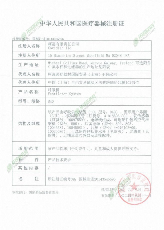 | 英文名稱 | Kehui ventilator 840 |