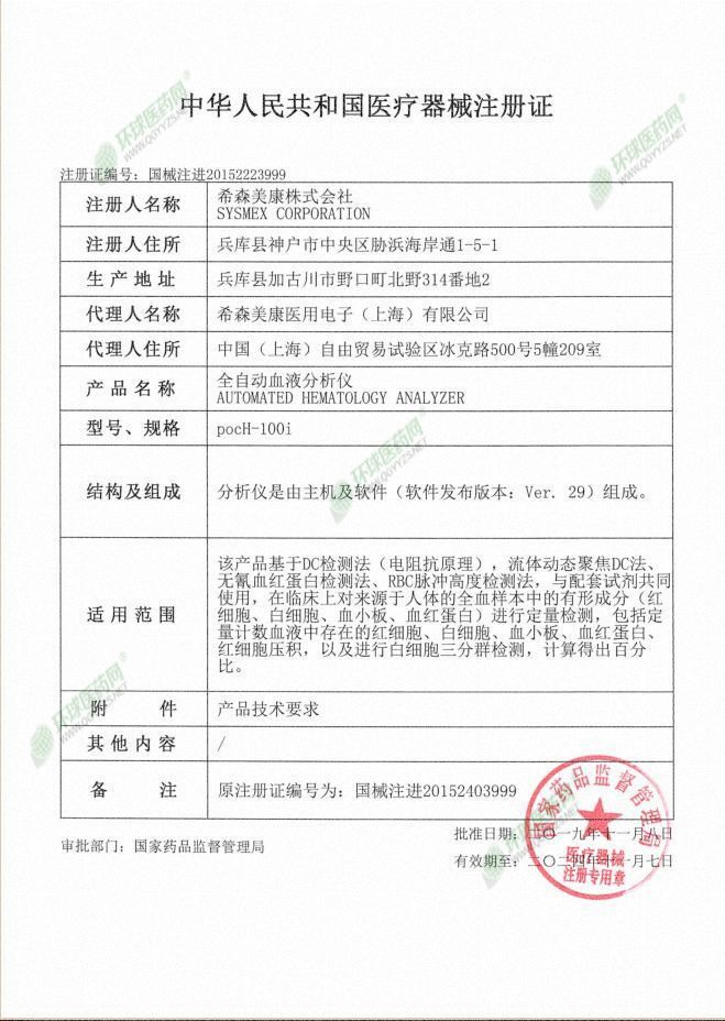 | 英文名稱(chēng) | Xi sen mei kang quan automated hematology analyzer pocH-100i |