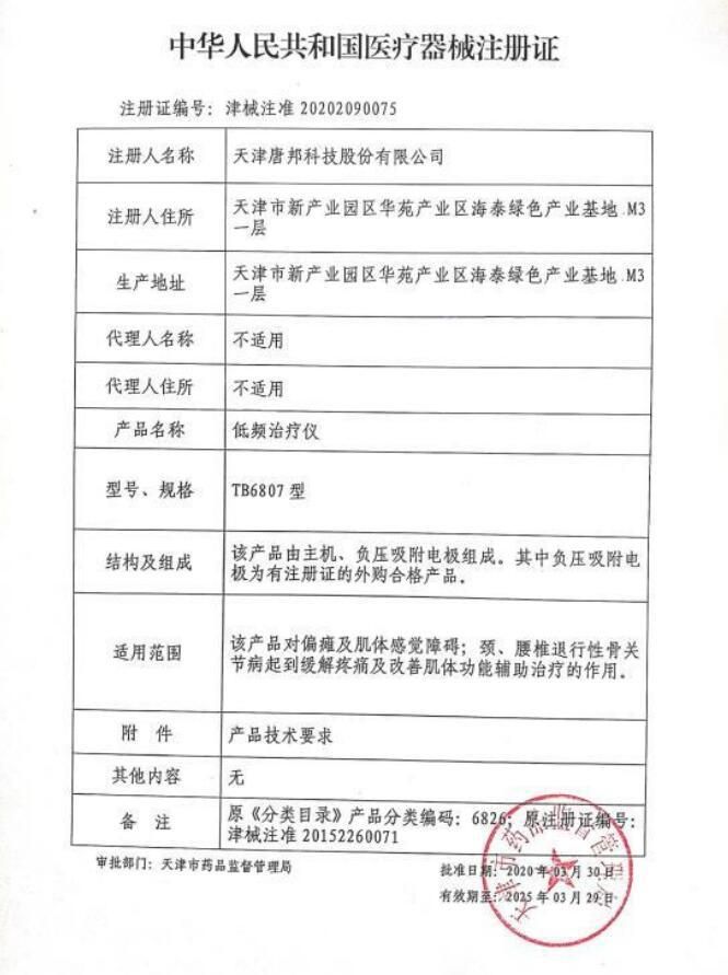 | 英文名稱 | Tangbang low frequency therapeutic instrument TB6807 |