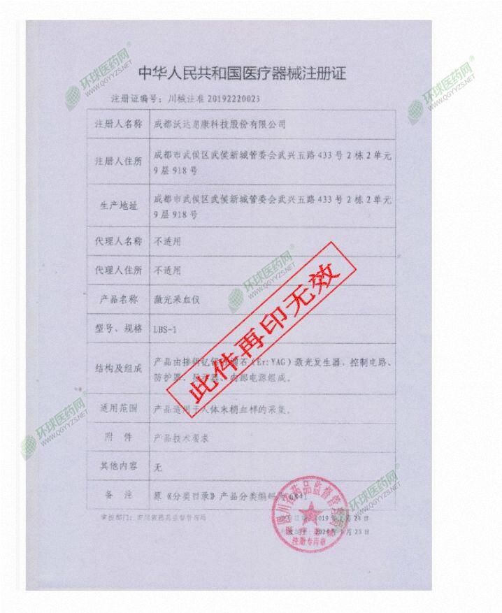 | 補充說明 | 產(chǎn)品由摻鉺釔鋁石榴石(Er:YAG)激光發(fā)生器、控制電路、防護(hù)罩、顯示器、內(nèi)部電源組成。產(chǎn)品適用于人體末梢血樣的采集。 |