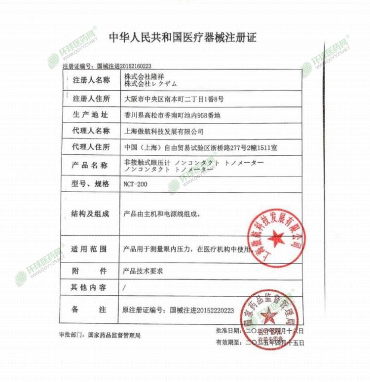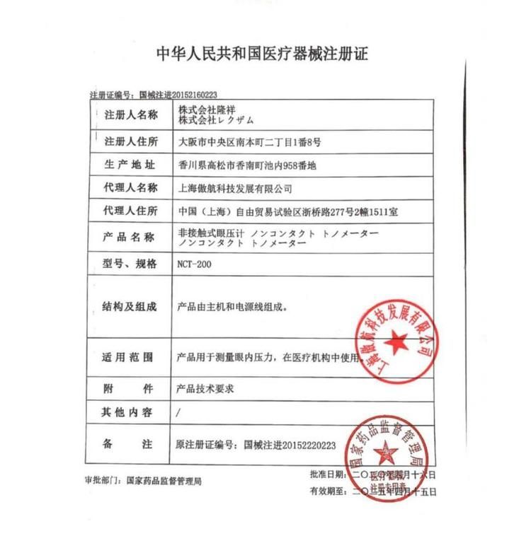 | 英文名稱 | New Japan non-contact tonometer NCT-200 |