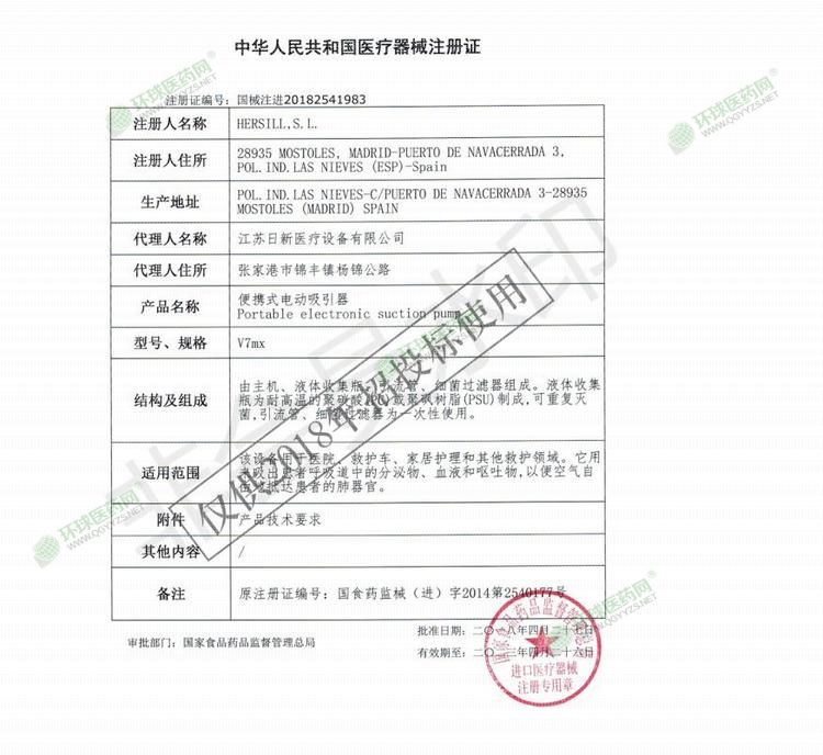 | 其它說明 | 原注冊證編號:國食藥監(jiān)械(進)字2014第2540177號 |
