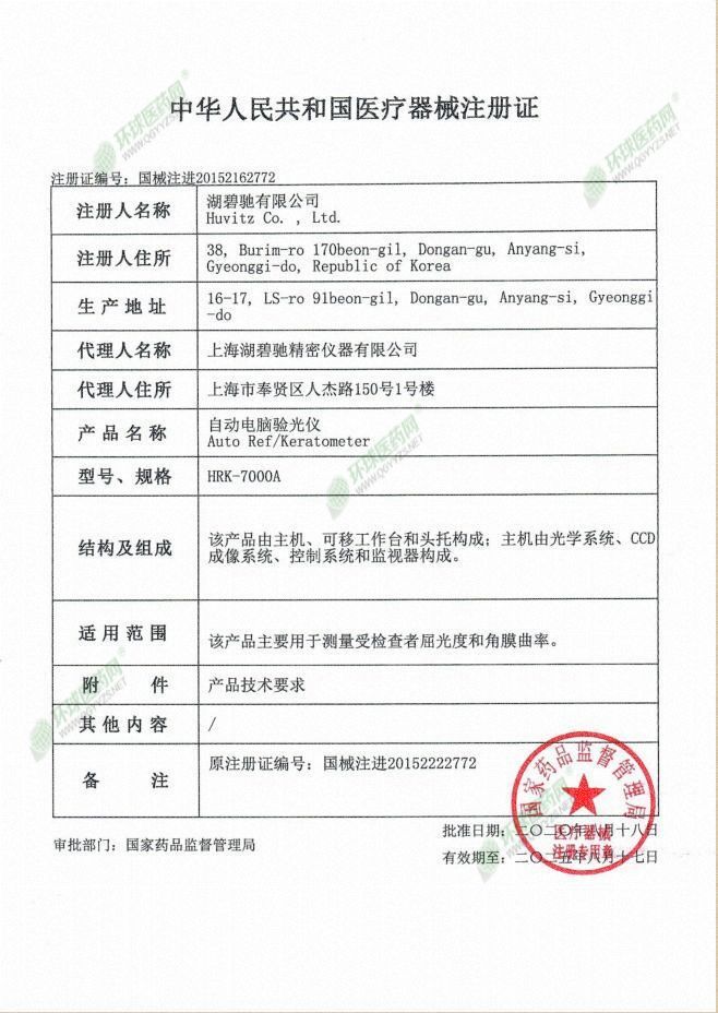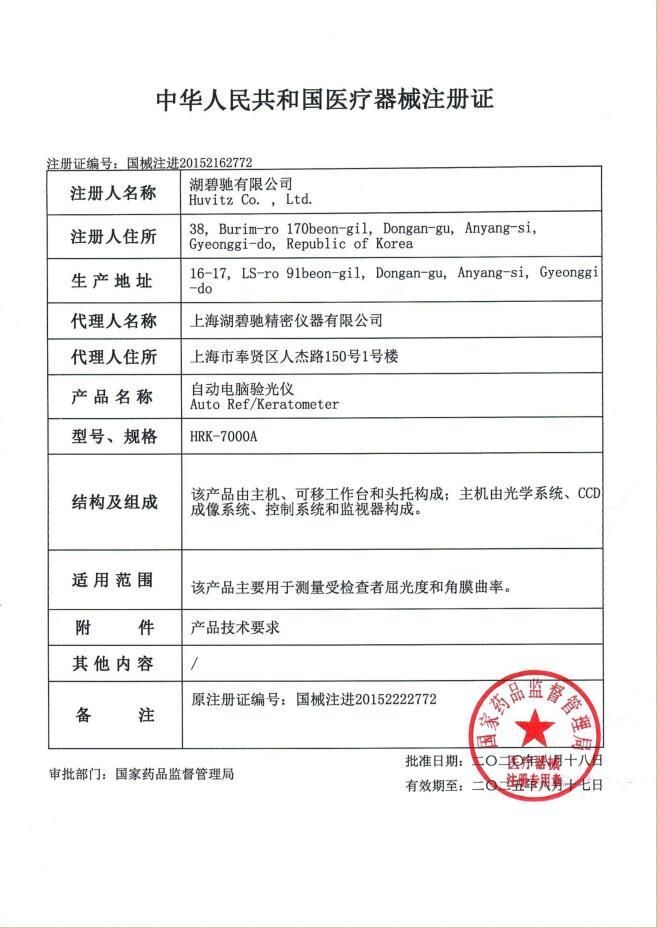 | 英文名稱 | Hubichi automatic computer optometry instrument HRK-7000A |