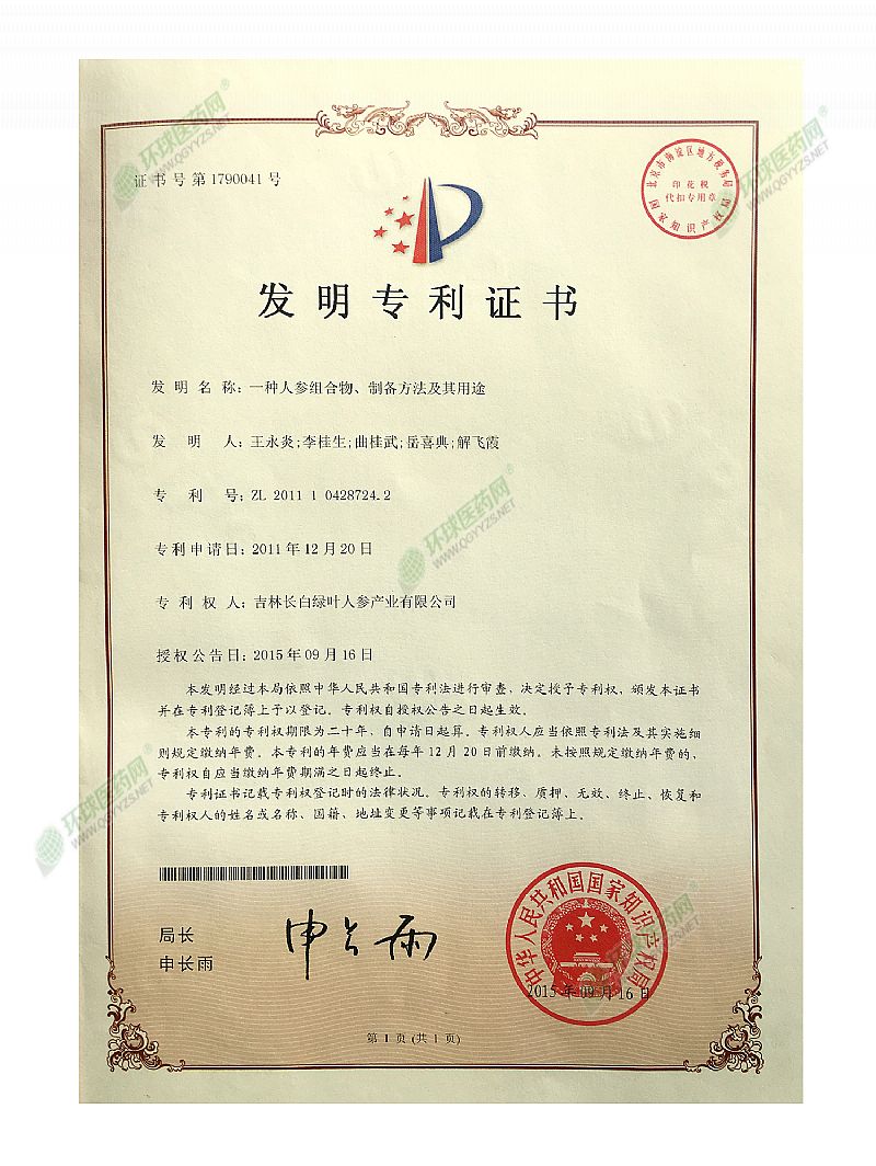 人參提升免疫力院士組方專利保健食品