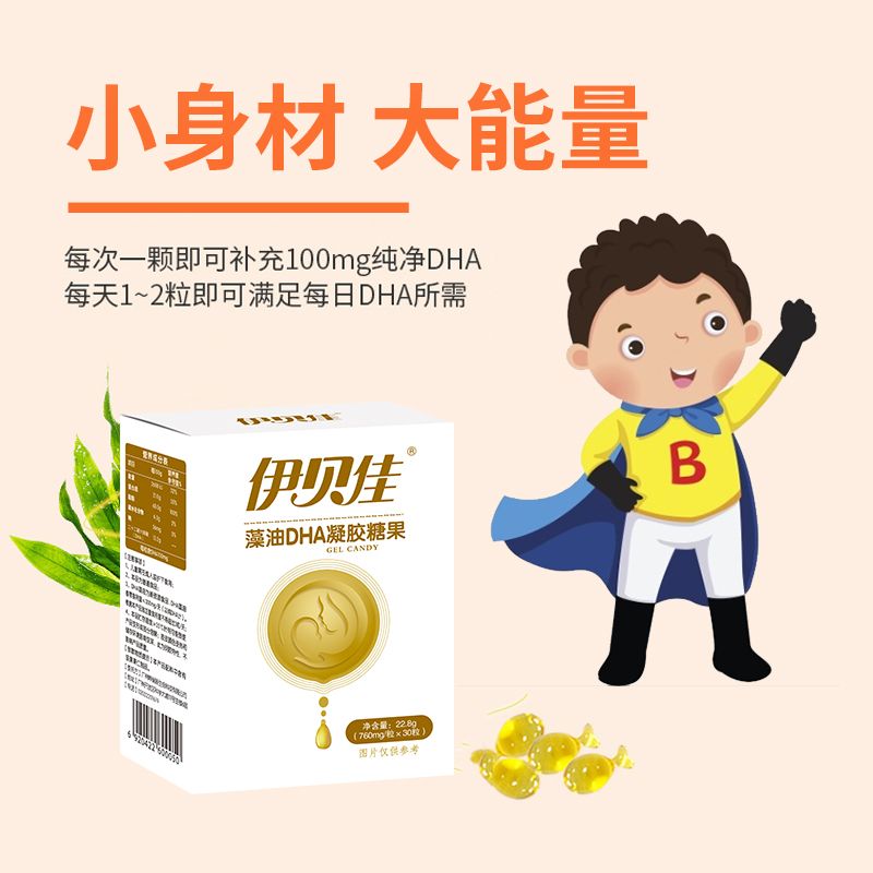 | 補充說明 | .[注意事項] 1、兒童需在成人監(jiān)護下食用; 2、本品為普通食品; 3、DHA藻油為新資源食品,DHA藻油推薦食用量≤300mg/天( 以純DHA計)。根據(jù)本產(chǎn)品添加量食用量不得超過3粒/天; 4、本品貯存溫度≥35°C時有可能致使產(chǎn)品變形或部分溶解;膠皮顏色受熱和儲存環(huán)境影響變深,此為明膠特性,不影響產(chǎn)品質(zhì)量。 伊貝佳 藻油DHA凝膠糖果采用植物性海藻油提取,更安心。 |