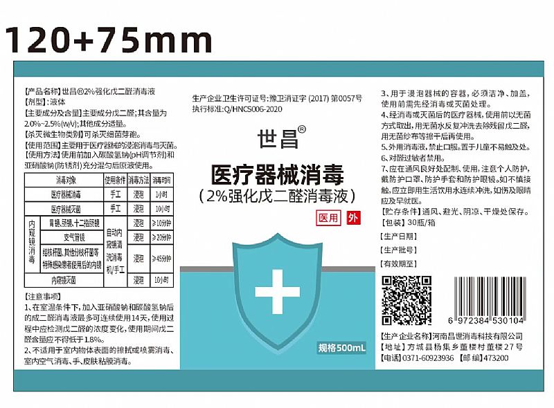 產(chǎn)品名稱: 世昌®;2%強(qiáng)化戊二醛消毒液