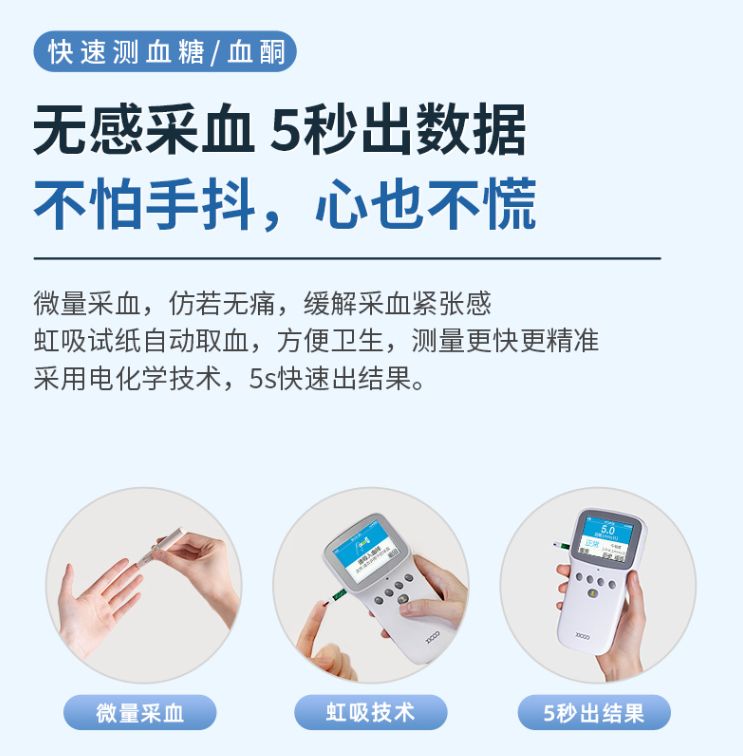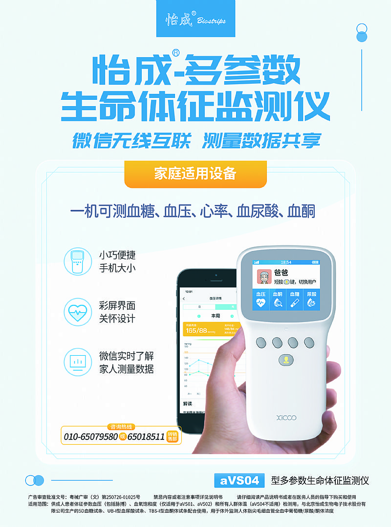 | 產(chǎn)品用途 | 供成人患者體征參數(shù)血壓(包括脈搏)、血氧飽和度(僅適用于aVS01、aVS02)和**人群體溫(aVS04不適用)檢測(cè)用,與北京怡成生物電子技術(shù)股份有限公司生產(chǎn)的5D血糖試條、UB-I型血尿酸試條、TBS-I型血酮體試條配合使用,用于體外監(jiān)測(cè)人體指尖毛細(xì)血管全血中葡萄糖/尿酸/酮體濃度。 |