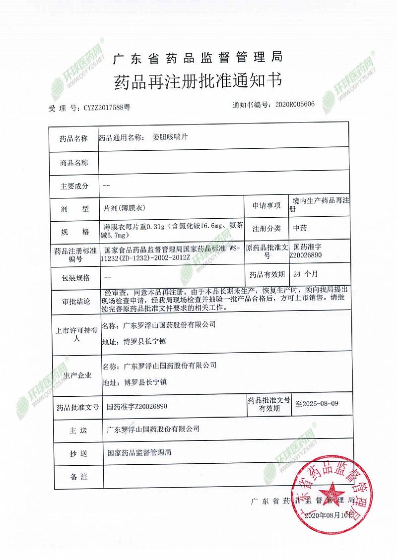 | 藥品上市許可持有人 | 廣東羅浮山國藥股份有限公司 |