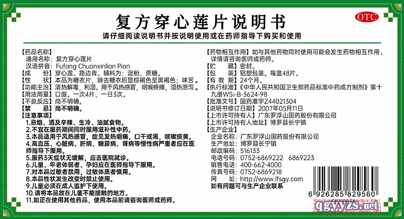 通用名稱: 復(fù)方穿心蓮片