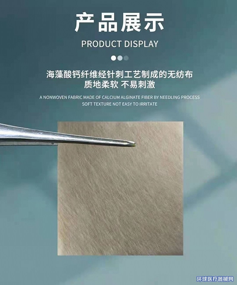 | 補(bǔ)充說明 | 【型號(hào)規(guī)格】5cm×5cm、5cm×10cm、7.5cm×12.5cm、10cm×10cm、10cm×20cm、20cm×20cm、20cm×30cm、30cm×30cm 【結(jié)構(gòu)組成】本產(chǎn)品為海藻酸纖維經(jīng)針刺工藝制成的無紡布或梳棉后形成的毛條結(jié)構(gòu)。經(jīng)環(huán)氧乙烷滅菌,一次性使用。 【適用范圍】適用于體表覆蓋創(chuàng)面,吸收創(chuàng)面滲液,用于止血。 |