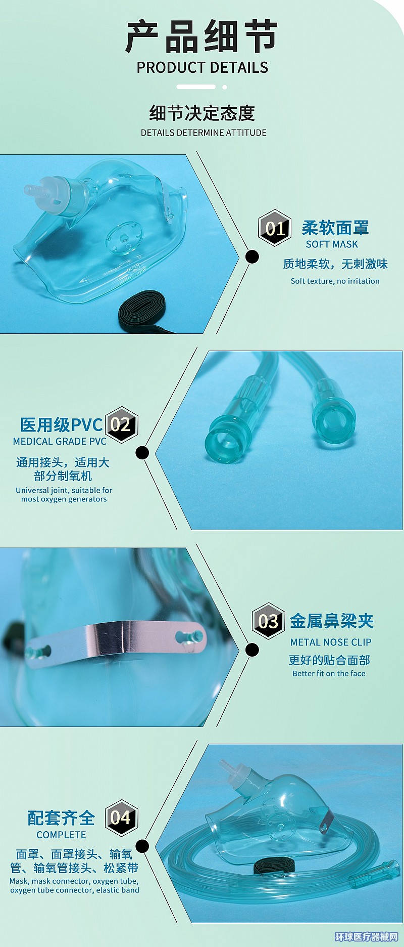 | 補(bǔ)充說明 | 【型號】A型 【規(guī)格】100袋 【結(jié)構(gòu)組成】面罩、面罩接頭、輸氧管、輸氧管接頭、金屬鼻梁夾、松緊帶 【適用范圍】供醫(yī)療單位為患者提供吸氧時使用 【產(chǎn)品特點(diǎn)】1、醫(yī)用級PVC輸氧管 2、12個排氣孔,及時排出呼出的二氧化碳; 3、2米加長吸氧管,通用接口。適合市場上大部分制氧機(jī) 4、彈性掛繩,防止脫落,使用方便 【有效期】2年 |