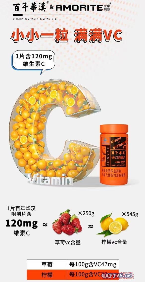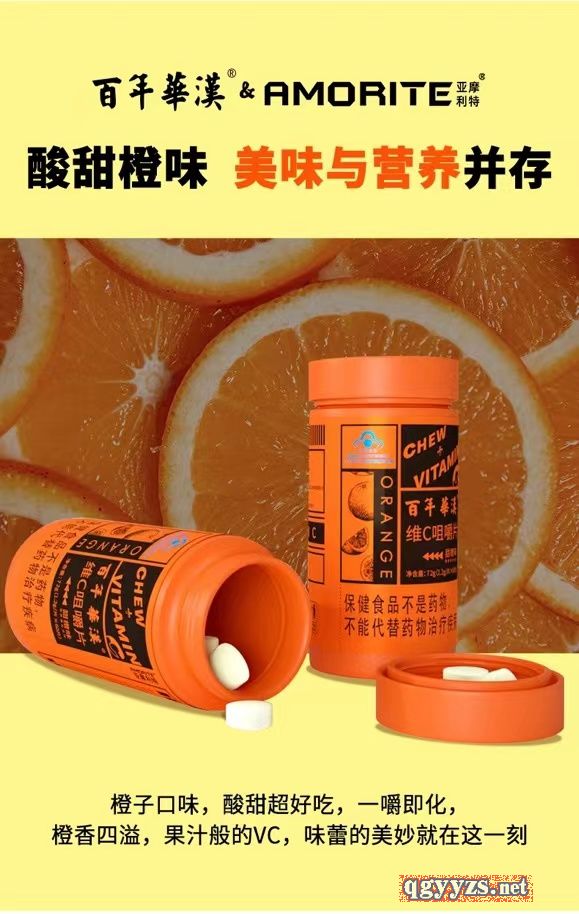 產(chǎn)品名稱: 百年華漢亞摩利特維生素C咀嚼片(甜橙味