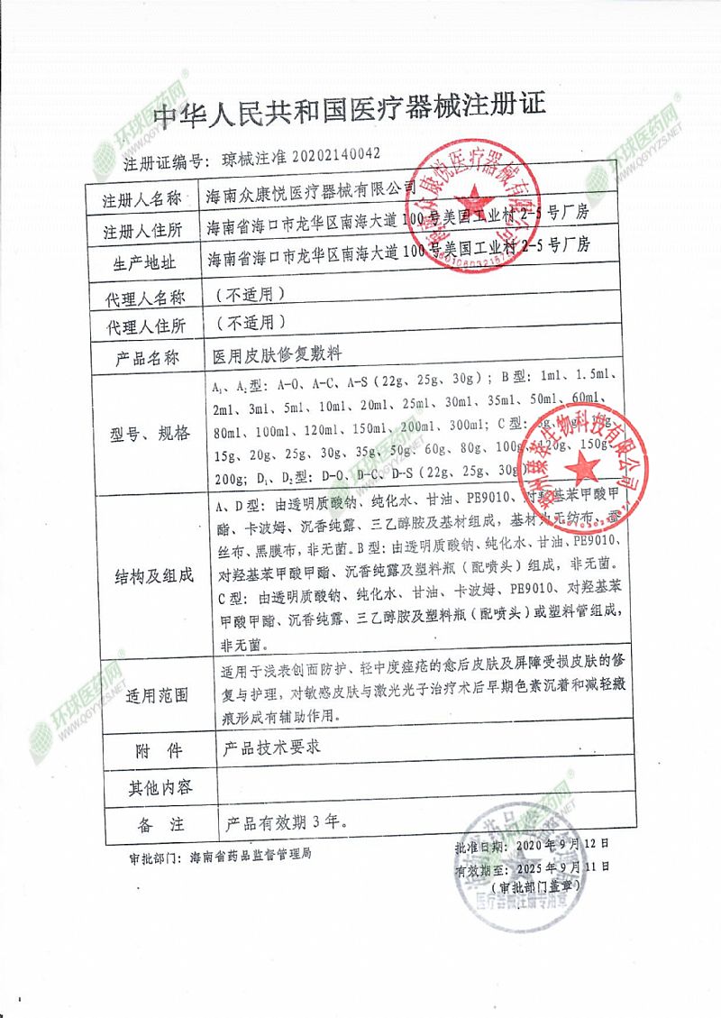 生產(chǎn)企業(yè): 海南眾康悅醫(yī)療器械有限公司