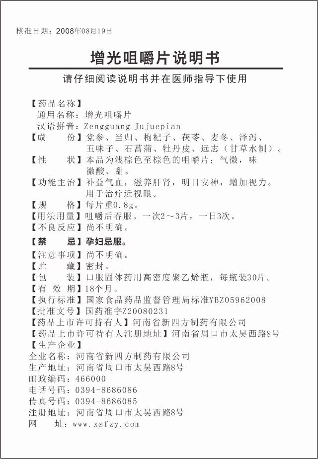 通用名稱: 增光咀嚼片