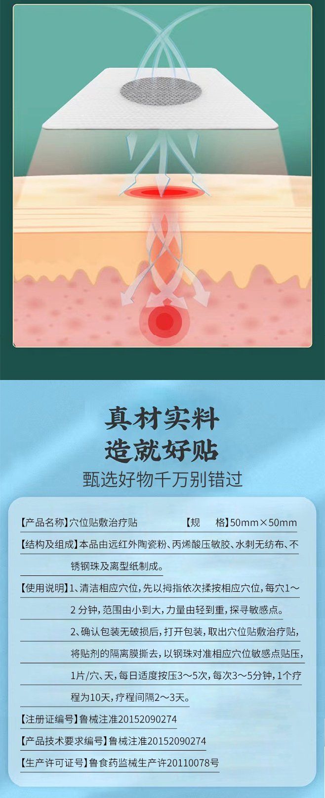 | 產(chǎn)品賣點(diǎn) | 正規(guī)專業(yè)化批文;每張敷貼都有高科技新型永磁復(fù)合體材料(促進(jìn)藥物滲透吸收);同類僅有春季生長貼(我們可貼一年四季);經(jīng)過七年大量臨床實(shí)踐驗(yàn)證而成。 |