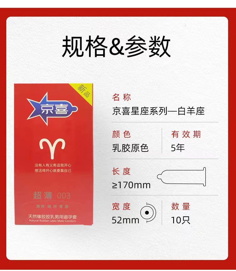 京喜12星座系列有趣又好玩的創(chuàng)意避孕套,借其頗具創(chuàng)新的設(shè)計(jì)理念、精準(zhǔn)的市場定位、以及優(yōu)秀的產(chǎn)品品質(zhì),上市以來即受到情侶們的青睞,京喜星座避孕套必將引導(dǎo)全新時(shí)尚健康的愛生活,讓產(chǎn)品更具年輕群體認(rèn)知接受,并成為“Z時(shí)代”年輕人個(gè)性時(shí)尚的專屬定制產(chǎn)品!