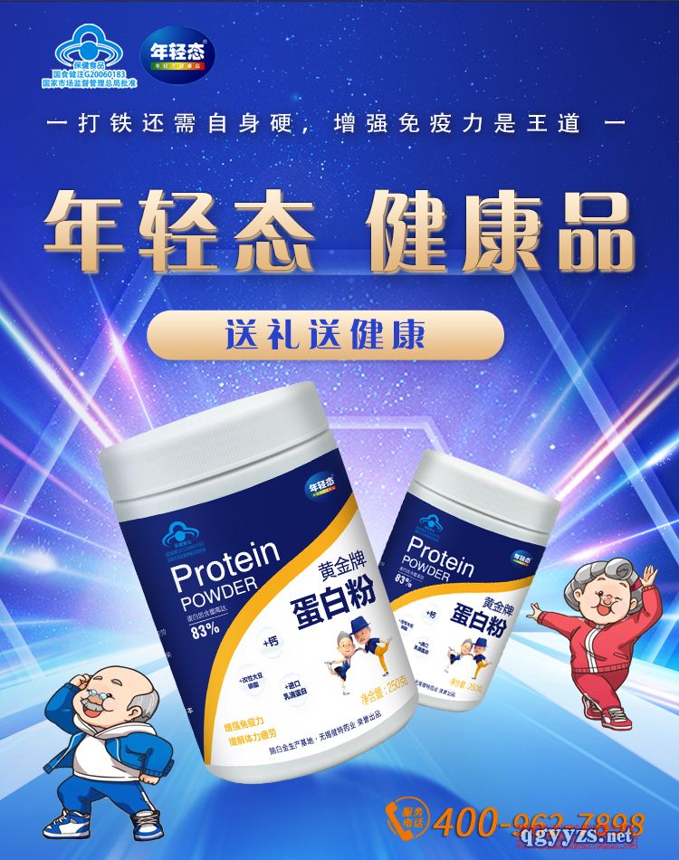 | 補(bǔ)充說(shuō)明 | 【產(chǎn)品名稱(chēng)】通用名稱(chēng):黃**蛋白粉 【主要原料】大豆分離蛋白、乳清蛋白、磷酸三鈣、改性大豆磷脂 【適宜人群】免疫力低下者、易疲勞者 【不適宜人群】少年兒童、孕婦、乳母 【保健功能】增強(qiáng)免疫力、緩解體力疲勞 【用法用量】每日1次,每次10克(附量具),用溫開(kāi)水沖服,或加入果汁及谷物、蔬菜等食品中食用,可根據(jù)個(gè)人口味添加適量蔗糖 【注意事項(xiàng)】本品不能代替藥物 【貯藏】置陰涼干燥處 【規(guī)格】250克/罐 【包裝規(guī)格】250g/罐 【有效期】24個(gè)月 【生產(chǎn)企業(yè)】企業(yè)名稱(chēng):無(wú)錫健特藥業(yè)有限公司 上海黃金搭檔生物科技有限公司無(wú)錫分公司 |