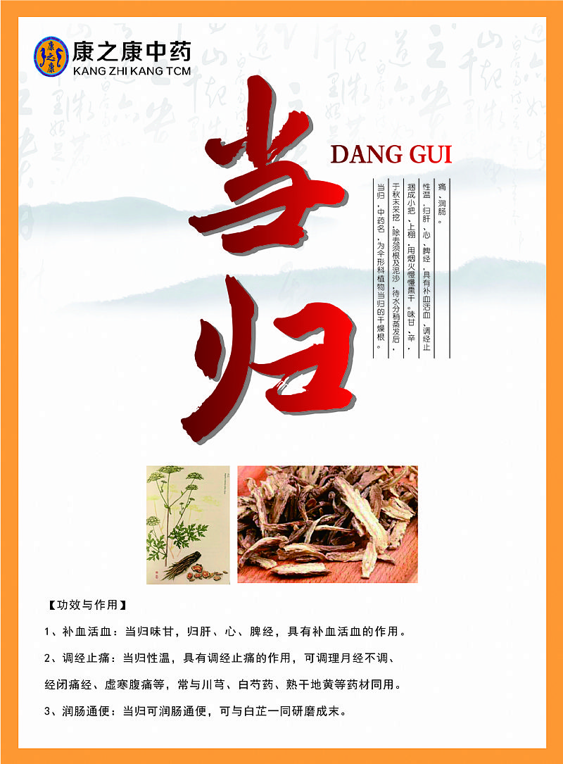| 產(chǎn)品用途 | 補血活血,調經(jīng)止痛,潤腸通便。用于血虛萎黃,眩暈心悸,月經(jīng)不調,經(jīng)閉痛經(jīng),虛寒腹痛,風濕痹痛,跌撲損傷,癰疽瘡瘍,腸燥便秘。酒當歸活血通經(jīng)。用于經(jīng)閉痛經(jīng),風濕痹痛,跌撲損傷。 |