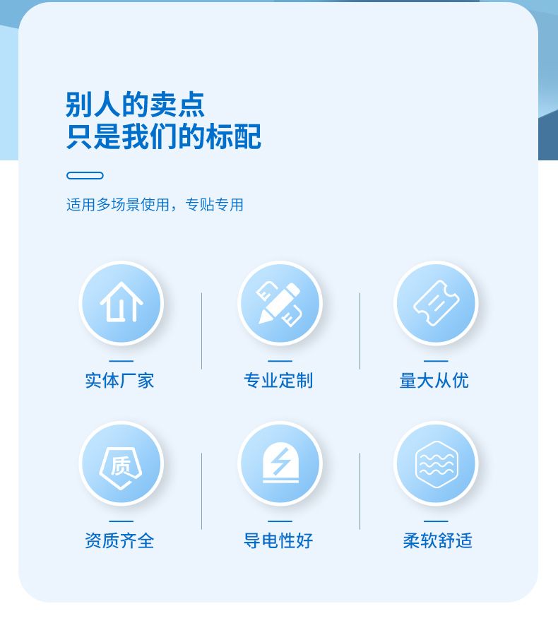 | 產(chǎn)品賣點 | 療效確切、代理方便;效果好、價位低;經(jīng)濟(jì)實惠、效果好、備受患者的青睞;低價招商; 市面上有的各類大小規(guī)格理療電極片,超聲耦合貼片,理療用體表電極均可加工定制! |