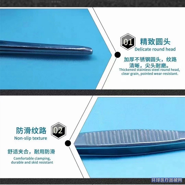 | 補充說明 | 【型號規(guī)格及尺寸】按產(chǎn)品的用途分為醫(yī)用鑷、敷料鑷、胸腔鑷、整形鑷、解剖鑷、牙用鑷、鼻用鑷、耳用鑷。 【結(jié)構(gòu)組成】由一對尾部疊合的葉片組成。鑷端有齒,有粗齒和細齒之分。采用不銹鋼材料制成。可重復(fù)使用。 【適用范圍】用于夾持人體組織。每支獨立包裝 【適用人群】醫(yī)療單位醫(yī)護人員。 【產(chǎn)品細節(jié)】不銹鋼圓頭、防滑紋路、加厚不銹鋼身,韌性好、彈性好。 1、精致圓頭。加厚不銹鋼圓頭,紋路清晰,尖頭耐磨。 2、防滑紋路。舒適夾合,耐用防滑 3、加厚不銹鋼。加厚不銹鋼身,耐用不易生銹,韌性好。 4、帶齒開口。開口帶齒設(shè)計,黏貼更穩(wěn),防滑易黏。 【使用方法】拿取鑷子時,手固定在持物鉗上端的兩個圓環(huán)或鑷子的上1/2處。 【注意事項】1、使用前請檢查包裝密封完整性,包裝破裂則禁止使用。 2、包裝袋內(nèi)配件脫落則禁止使用。 |