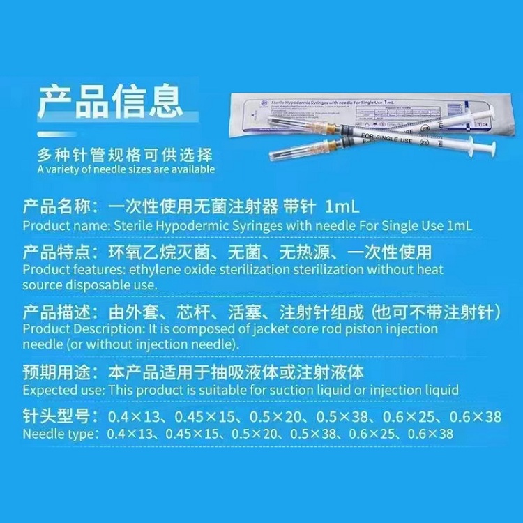 | 產(chǎn)品規(guī)格 | 注射器的規(guī)格有1ml、2ml、2.5ml、3ml、5ml、10ml、20ml; |