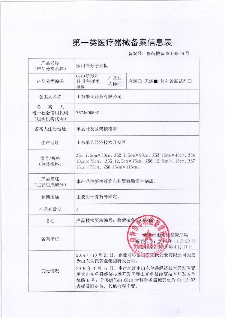 批準(zhǔn)文號(hào): 魯菏械備20140046號(hào) 【驗(yàn)證真?zhèn)?/a>】