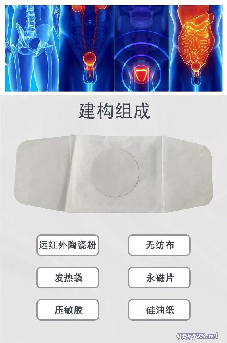 | 作用機(jī)理 | 用于對(duì)慢性前列腺治療的輔助性治療,清潔患處,確認(rèn)包裝無(wú)破損,打開包裝,取出磁熱療貼,將貼劑的隔離膜撕去,貼去患處 |