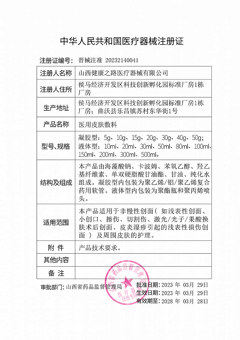 產(chǎn)品名稱: 醫(yī)用皮膚敷料(凝膠、噴霧)