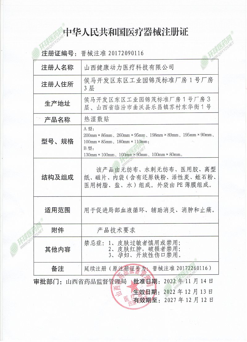 生產(chǎn)企業(yè): 山西健康動力醫(yī)療科技有限公司