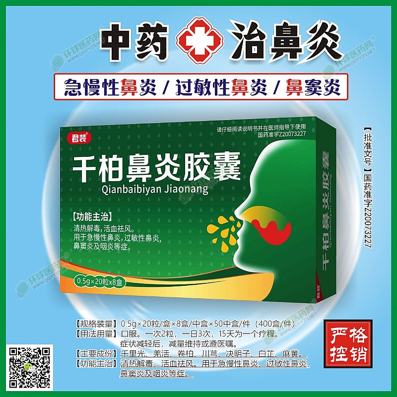 | 功能主治 | 清熱解毒,活血祛風。用于急慢性鼻炎,過敏性鼻炎,鼻竇炎及咽炎。 |