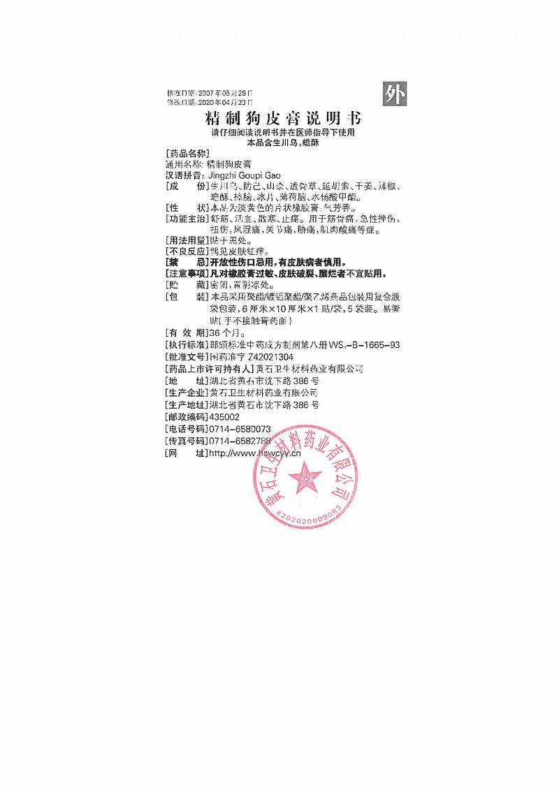 | 補(bǔ)充說明 | 【性狀】本品為淡黃色的片狀橡膠膏;氣芳香。 【注意事項(xiàng)】 凡對(duì)橡膠膏過敏、皮膚破裂、糜爛者不宜貼用。 【貯藏】密閉,置陰涼處。 【執(zhí)行標(biāo)準(zhǔn)】WS3-B-1665-93 |