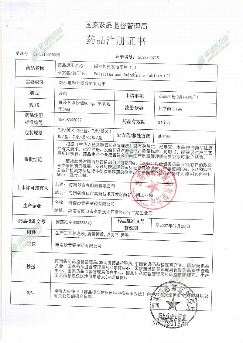 通用名稱: 纈沙坦氨氯地平片(1)