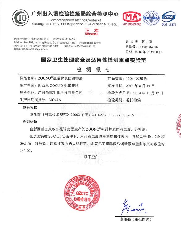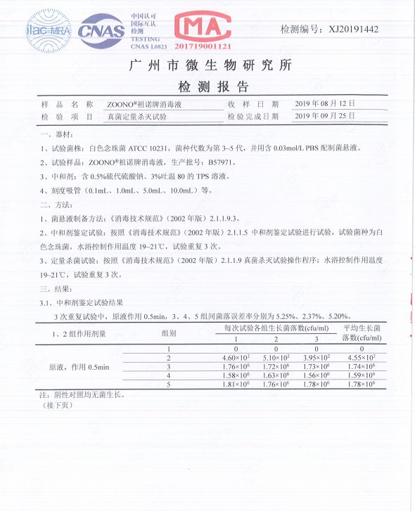 | 主要成分 | ZOONO納米分子針、第十一代聚合雙鏈季銨鹽、笨扎氯銨 |