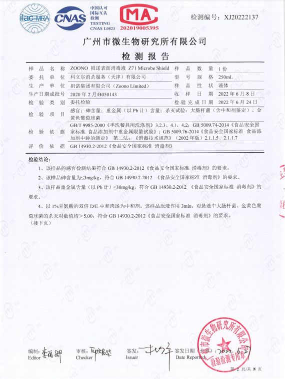 | 作用機(jī)理 | ZOONO原始抗菌技術(shù)是以切斷有害微生物傳播及抵制其生長(zhǎng)的技術(shù),采用全新的物理滅菌方式,滅菌率達(dá)99.99%(經(jīng)實(shí)驗(yàn)室測(cè)試認(rèn)證),能廣譜殺滅細(xì)菌、病毒、霉菌、真菌、藻類等微生物。 |
