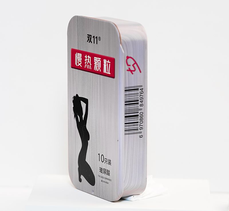 雙11慢熱顆粒避孕套金屬鐵盒進(jìn)口玻尿酸