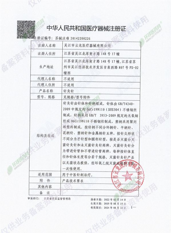 批準文號: 蘇械注準20142200226 【驗證真?zhèn)?/a>】