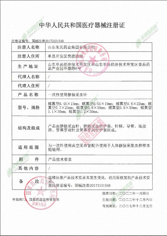 | 產(chǎn)品用途 | 適用范圍:與一次性使用直空采血管配合使用于人體靜脈采集血樣樣本檢驗用。 |