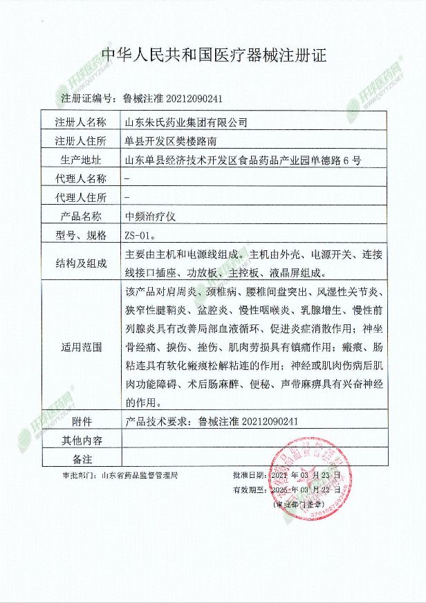 批準文號: 魯械注準20212090241 【驗證真?zhèn)?/a>】