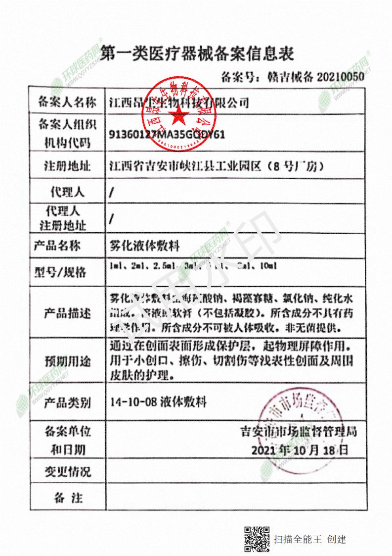 | 產(chǎn)品名稱 | 霧化液體敷料 |