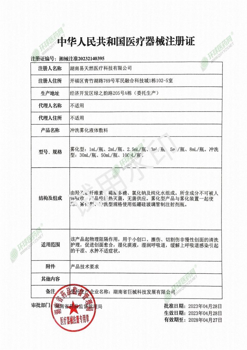 生產(chǎn)企業(yè): 湖南易天然醫(yī)療科技有限公司