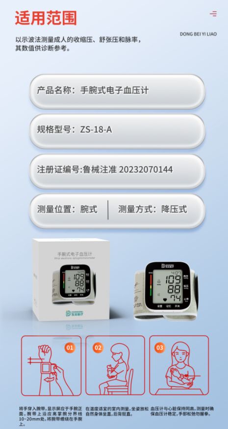 | 產(chǎn)品用途 | 以示波法測量成人的收縮壓、舒張壓和脈率,其數(shù)值供診斷參考。 |