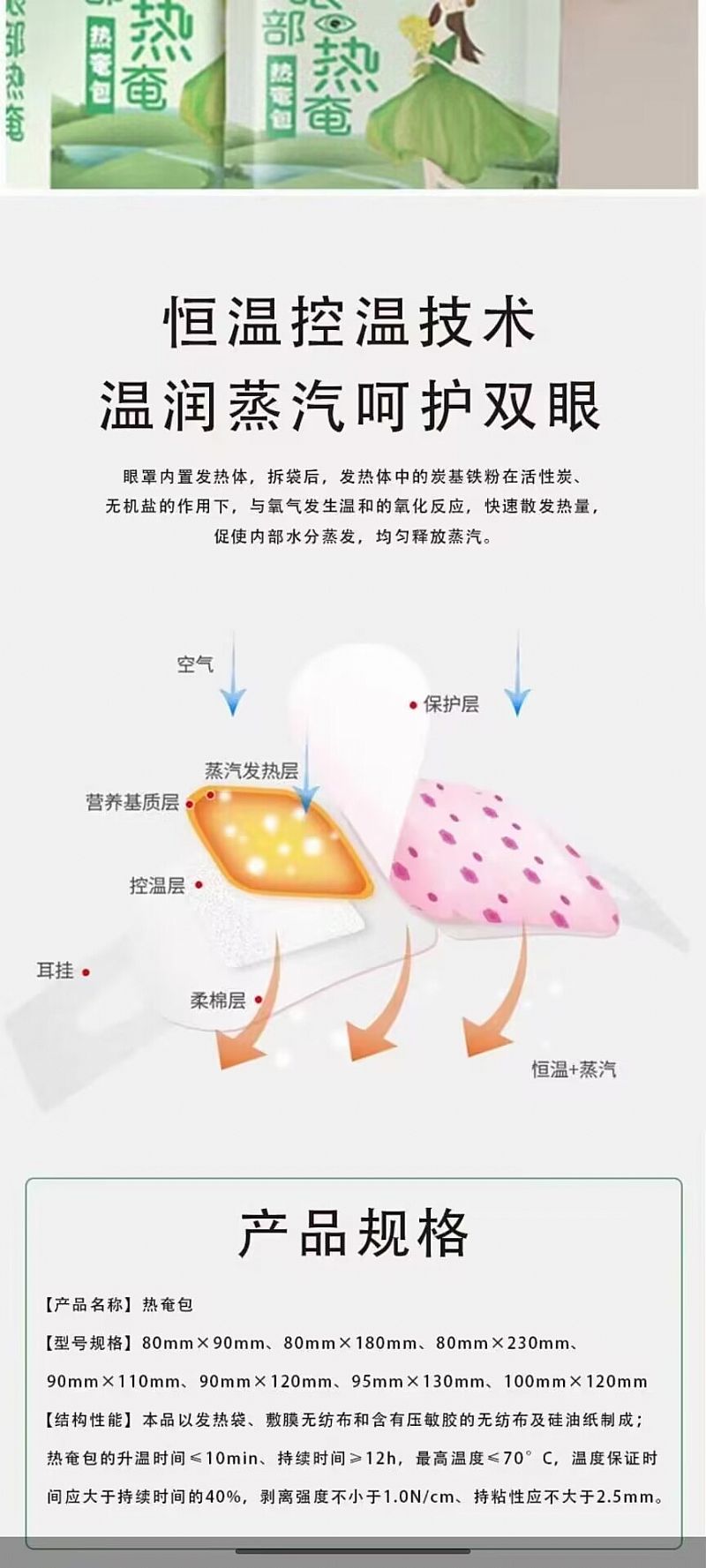 | 主要成分 | 本品以發(fā)熱袋、敷膜無紡布和含有壓敏膠的無紡布及硅油紙制成 |