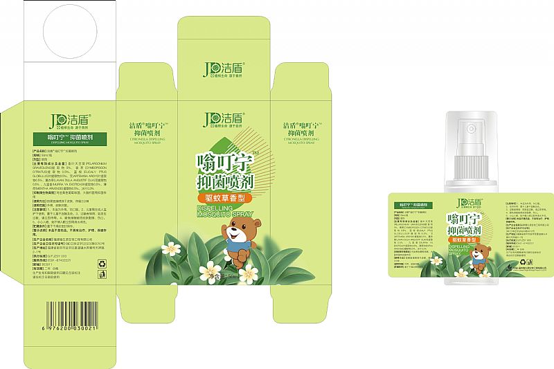 | 產(chǎn)品名稱 | =潔盾嗡叮寧™抑菌噴劑(驅(qū)蚊草香型) |