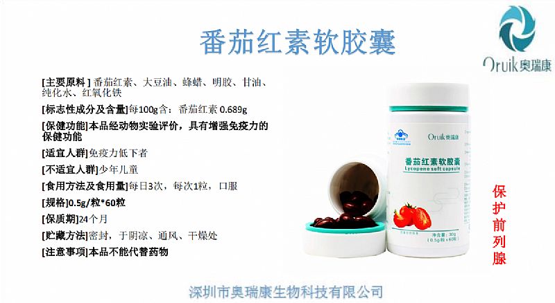 產(chǎn)品名稱: 奧瑞康番茄紅素軟膠囊
